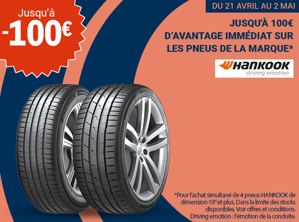 Jusqu'à 100€ en avantage immédiat sur les pneus de la marque HANKOOK*