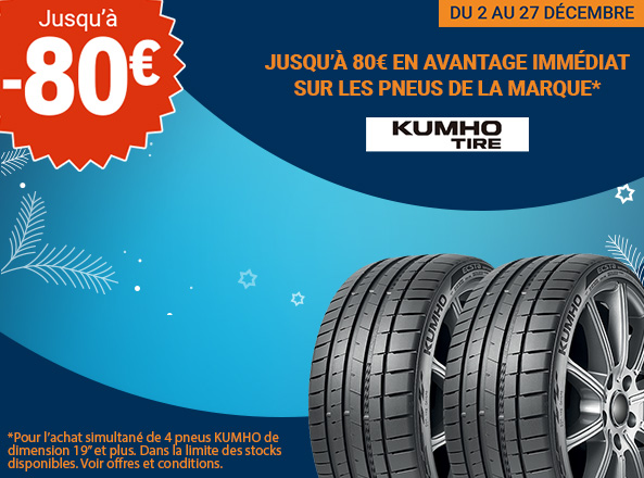 Jusqu'à 80€ en avantage immédiat sur les pneus KUMHO*