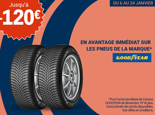 Jusqu'à 120€ en avantage immédiat sur les pneus de la marque GOODYEAR*