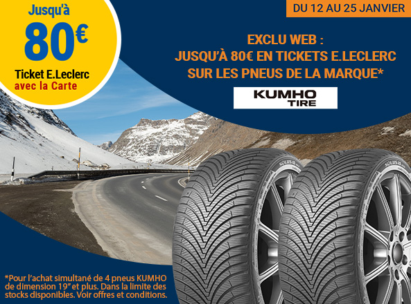 Jusqu'à 80€ en ticket E.Leclerc sur les pneus KUMHO*